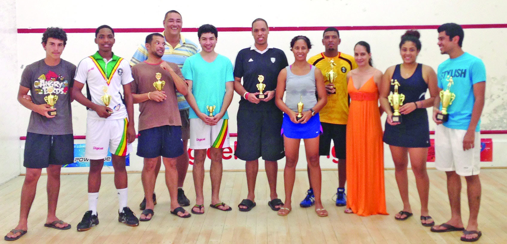 Meanwhile, in the final round of the round robin women’s tournament, Ashley Khalil made light work of Kathy Shuffler-Ten Pow in three straight sets to claim the women’s title. Ashley, who also played in the male category, seemed unstoppable as she showed no mercy against the former Caribbean champion in her first tournament back, winning 11/5, 11/4, 11/5.