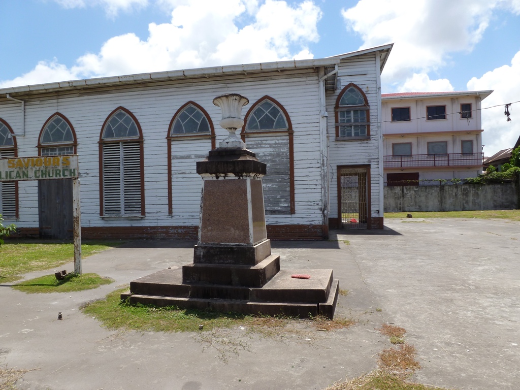 The grave site of De Saffon now lies at the corner of Broad and Saffon streets, in the church yard of St Saviour’s Church, once known as St Saviour’s Chinese Church since it was designated to provide a place of worship for the newly introduced Chinese population in Georgetown. (The word “Chinese” was omitted from the name in 1939, and the church is now known as St Saviour’s Parish Church). It was purchased in 1845 from the administrators of the Saffon estate.