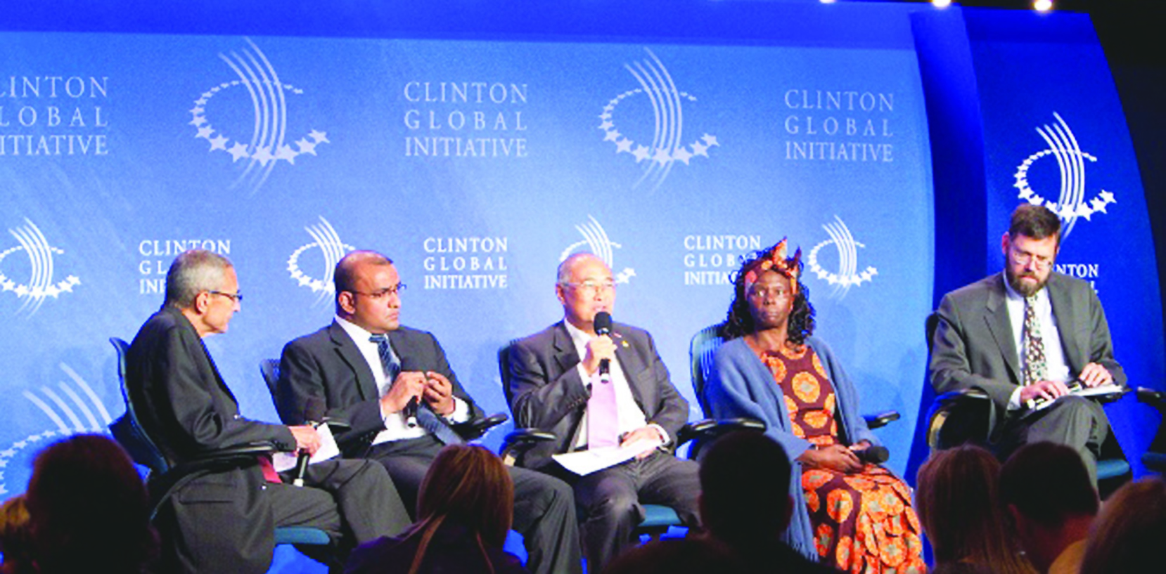 Flashback: The late Wangari Maathai (second right), President Bharrat Jagdeo (second left) and other officials at the Clinton Global Initiative 2010 Annual Meeting that addressed Investing in the World’s Forests