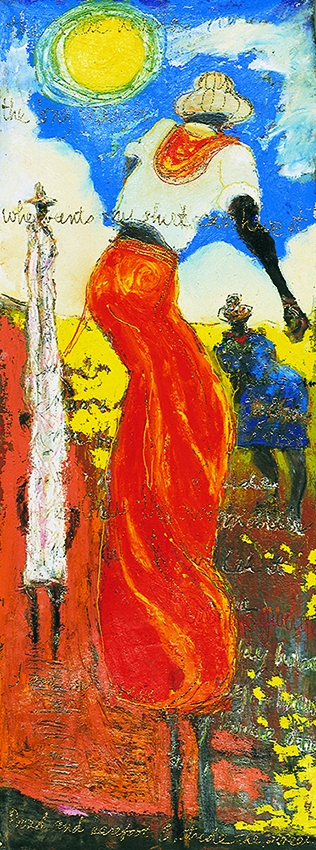 Barely out of his teens and equipped with all the proper middle-class values, even as Davson sought a way through art to participate in the important formal issues of contemporary modernity, the exciting beat of the drums, the strange thin tunes of the pipes and the unruly landscape of the vast Guyana interior were beguiling. The paintings and drawings he produced at that point reflected the lives of people and the quotidian reality of his environment. Bearing titles such as, ‘Old Woman Wid de Weary Eyes’ and ‘Domino Players’, these works demonstrated his need to attend to the local, on the way to discovering something much more universal in a formal and expressive sense.