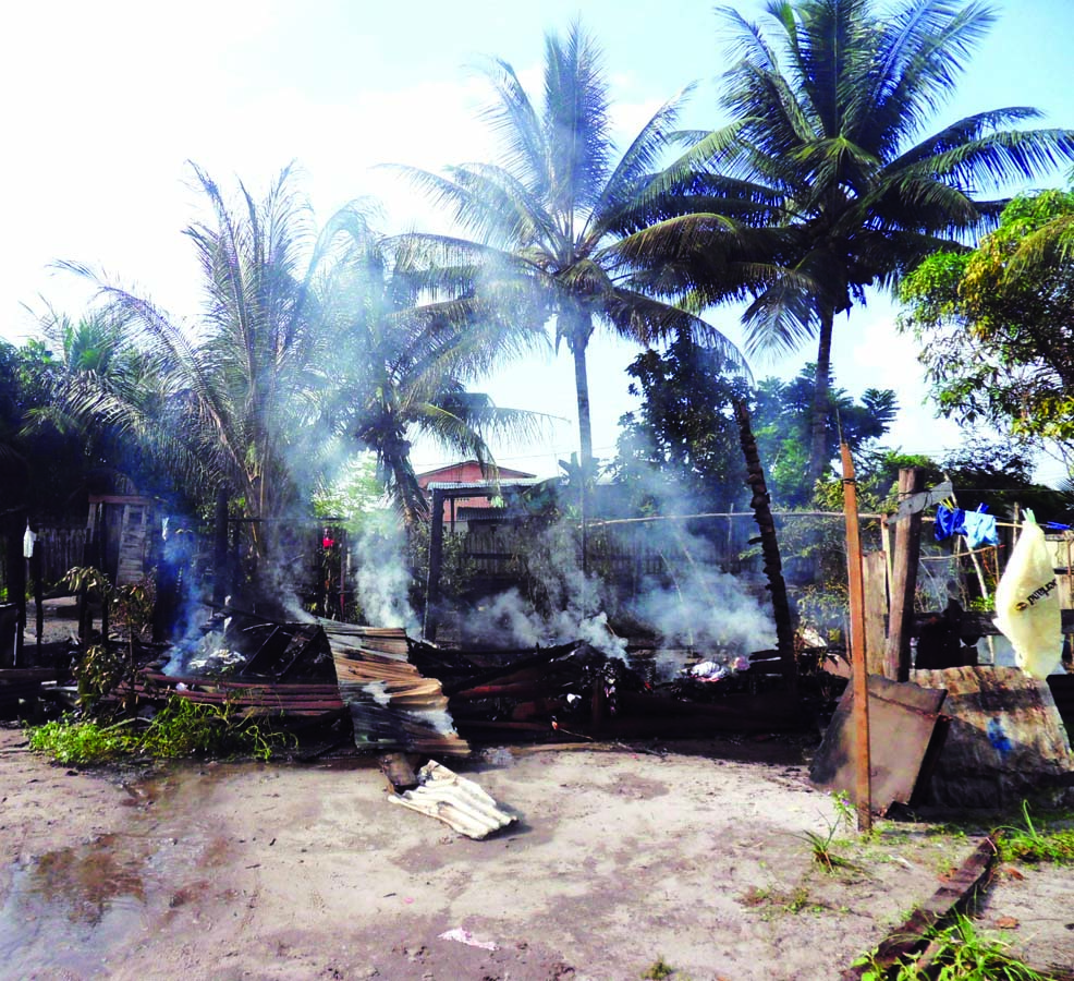 The owner of the destroyed wooden structure, Pauline Thom-Francis, told Guyana Times International that she and her family were at church when the fire struck. She added that she doesn’t know how the fire started, but she is sure the flame in the kerosene stove the family used was put out before she left for church, as she checked it herself. The home does not have electricity connection, so an electrical trigger to the fire has been ruled out.