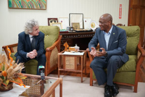 Minister of State, Mr. Joseph Harmon, on Wednesday, met with Mr. Mikel Erquiaga, the Global New Ventures Director for Repsol, an integrated global energy company based in Madrid, Spain.