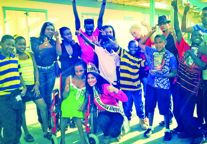 Miss Guyana Universe 2013/ 2014 Katherina Roshana has described her recent outreach to children of the Cheshire Home-Young Voices in Linden, Region 10, as an exhilarating and exciting experience.
