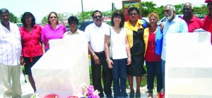 Nadira Jagan-Brancier and central Executive Members of PPP/C and PYO in Region Two at the unveiling ceremony on March 26