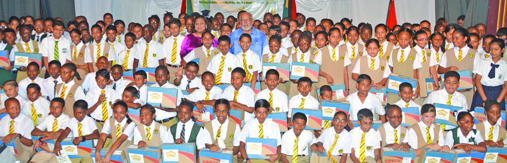 Some 173 students who placed in the country’s top one per cent at the 2013 National Grade Six Assessment (NGSA) examinations were presented with laptop computers on Wednesday by President Donald Ramotar.