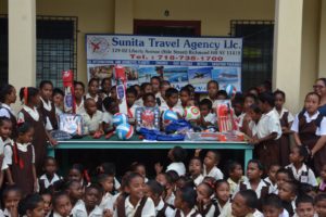 “On behalf of the students, teachers and community we would like to thank Sunita Travel Agency of New York and Patrick Mahase family who made this very generous donation to our school. We would like you to know that this will go a long way towards our physical education program,” said Headmistress Joan Russell at the simple ceremony.