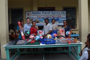 After donating motorized scooters to two deserving Guyanese last year, Sunita Travel Agency, Inc., recently handed over an assorted sports kit to Lima Sands Primary School, five miles aback of the township of Anna Regina, Region Two (Pomeroon-Supenaam).
