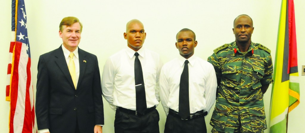 The Guyana Defence Force (GDF) and the U.S. embassy celebrated the achievement of two members of the GDF who have received full scholarships to attend two of the most prestigious academies in the United States. Errol Van Lange will be a cadet at the United States Military Academy in West Point, New York and Czedra Frank will be a Midshipman at the United States Naval Academy in Annapolis, Maryland, the U.S. embassy said in a release. These academies only accept 15 international students each year and have had a number of distinguished graduates, including six heads of state,two Nobel peace awardees, 116 Rhodes scholars, and many ambassadors and generals. Both Van Lange and Frank will be studying engineering while they are in school.