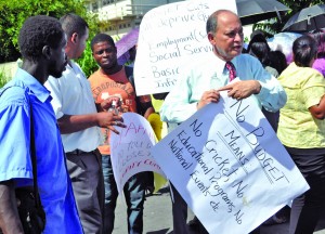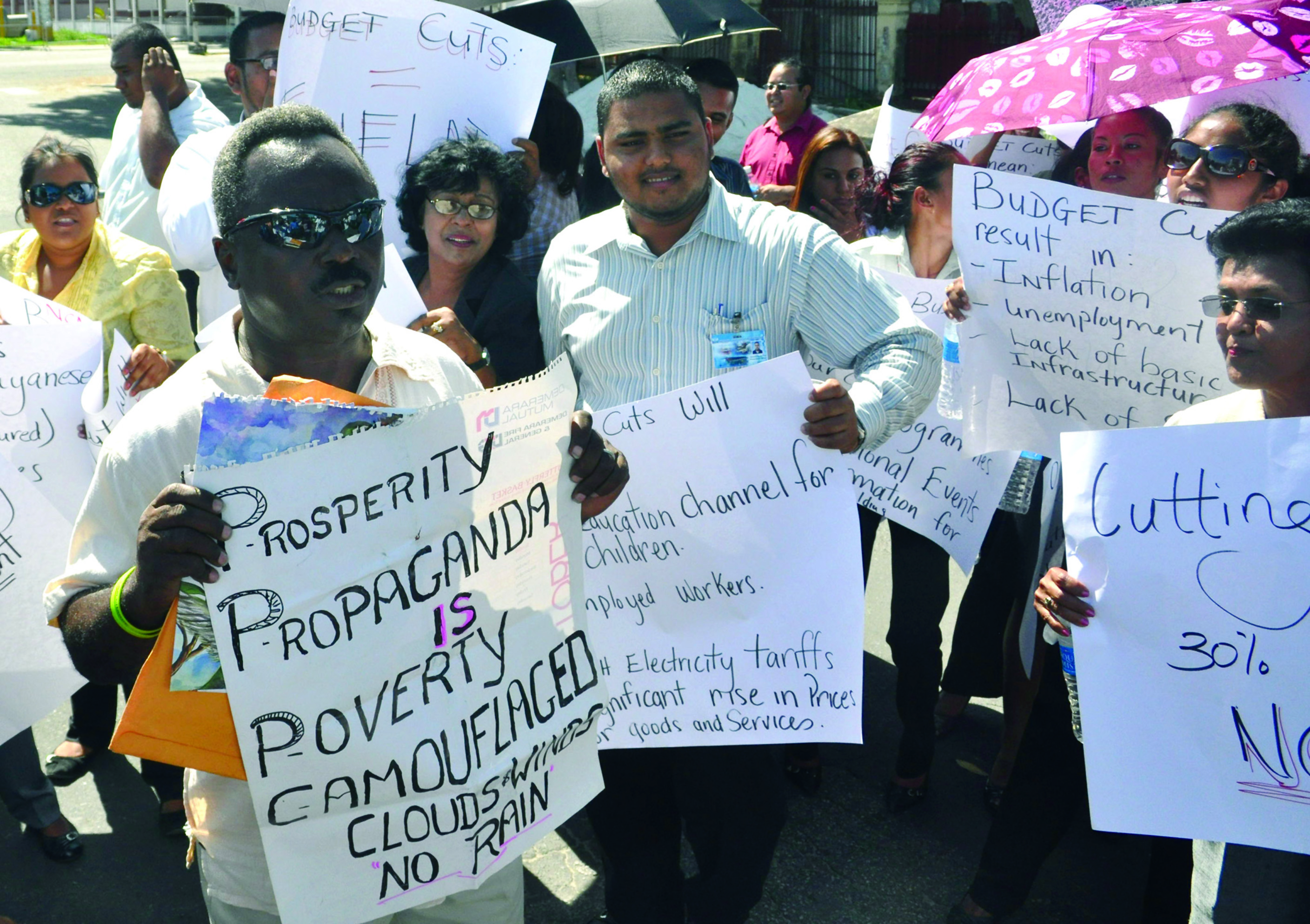 NCN CEO Mohammed Sattaur protesting the APNU/AFC proposed subsidy cut on Tuesday