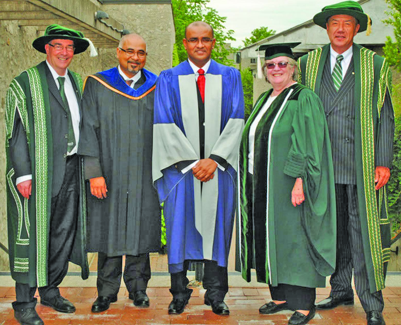 Former President of Guyana Bharrat Jagdeo last Wednesday received the honorary doctorate conferred upon him by Trent University, his fifth such honour in recent years. Trent University, with a world-class reputation in environmental and resource sciences, water science and biomaterials, conferred the honour on Jagdeo in recognition of his global advocacy for averted climate change through avoided deforestation, by linking economic development in forested countries to carbon sequestration, ecosystem services and preservation of biodiversity.