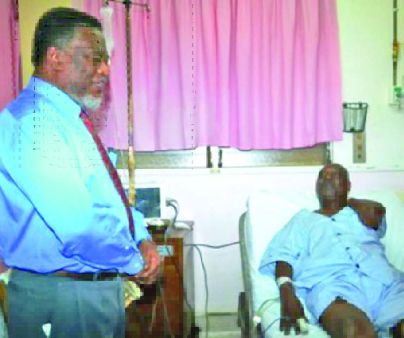 - Prime Minister Samuel Hinds, performing the duties of president, sharing a light moment with People’s National Congress (PNC) General Secretary Oscar Clarke at the Georgetown Public Hospital Corporation (GPHC)