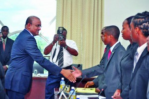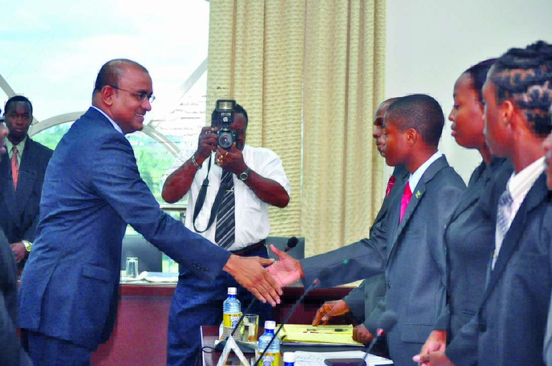 President Bharrat Jagdeo greets participants of this year’s National Youth Parliament