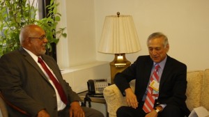 Guyana’s Head of State Donald Ramotar continued his rounds of meetings on the sidelines of the 67th United Nations General Assembly in New York and on Tuesday met with Regional Director of the United Nations Development Programme (UNDP) Heraldo Munoz and delegation. The officials discussed a number of initiatives.