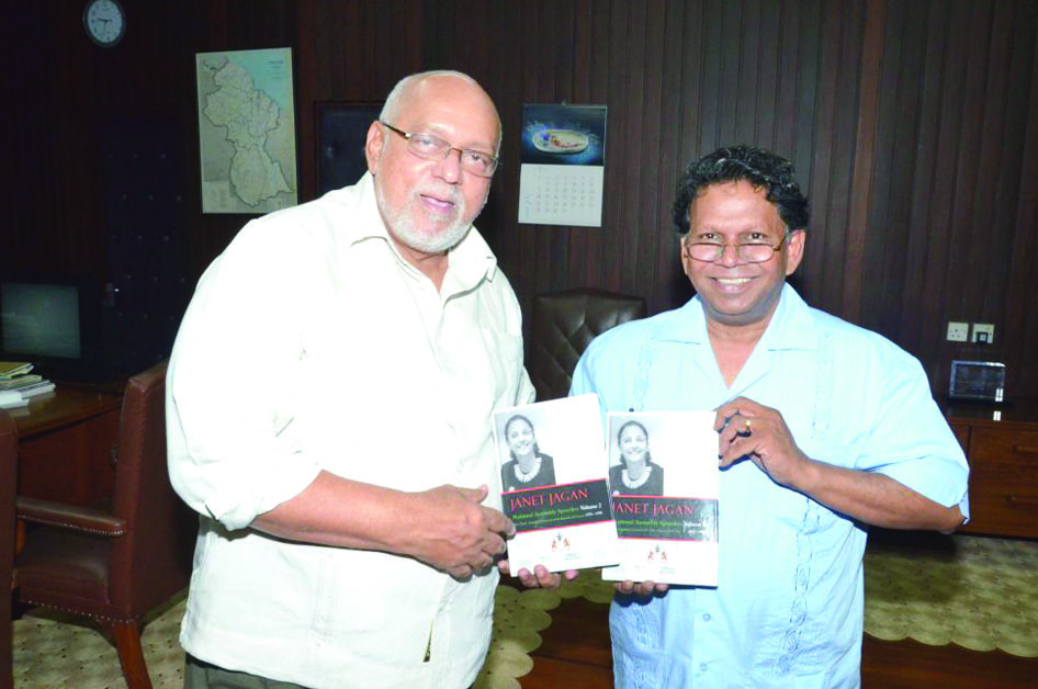 President Donald Ramotar last Thursday received a copy of Volumes One and Two of late President Janet Jagan’s speeches in the National Assembly, the preface for which was authored by President Ramotar.