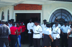 Among those gathered to pay their respects to the deceased was embattled Director of Prisons (ag), Gladwin Samuels. He was hailed as a hero by his colleagues and friends.