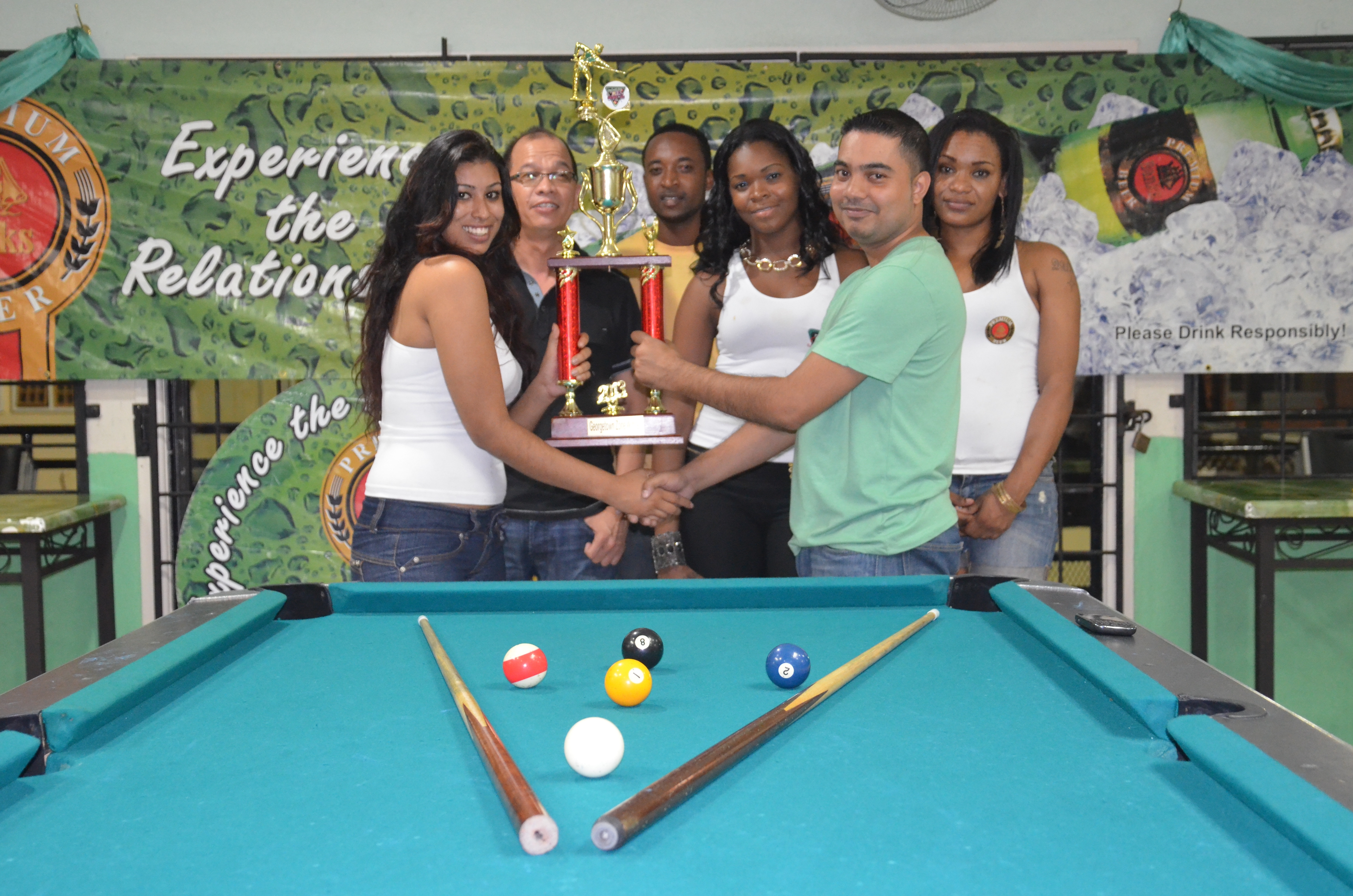 Ryan Rambalak was crowned champion of the Georgetown “Premium Cues Showdown” pool tournament last Sunday at Buddy’s Pool Hall on Sheriff Street. In a keenly contested Georgetown leg of the countrywide tournament, Rambalak battled to victory against 32 players, and for his win he took home a first prize of Gy$ 60,000 and a trophy.