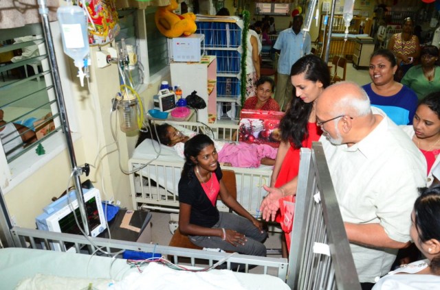 There were smiles on the faces of many of the 26 young patients on Christmas Day, when President Donald Ramotar accompanied by his daughter Lisa Ramotar, along with Chief Executive Officer Michael Khan and other officials visited the Paediatric Ward of the Georgetown Public Hospital.