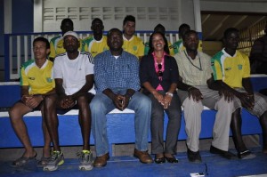 The full team reads: Travis Bess, Jermaine Gradison (Captain), Marlon Benjamin, Ron Fiedtkou, Marmarlaque Davidson, Ralph Alexander, Deshawn Joseph, Michael Wilson, Colric Beckles, Abdulla Hamid (Coach), Rowena DeJonge (Physio), Rollin Tappin (Manager).
