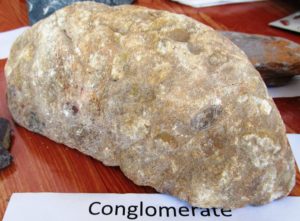 Conglomerate is a course grained clastic sedimentary rock that is composed of a substantial fraction of rounded to sub angular gravel-sized clasts such as pebbles, granules, cobbles and boulders larger than 2mm (0.079 in) in diameter.