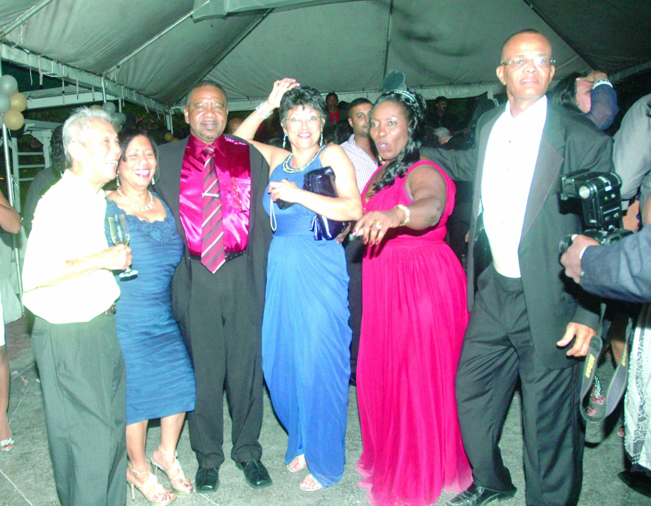 People’s National Congress leader Robert Corbin and his wife, retired Major General Michael Artherly and his wife, along with Dr and Mrs Billy Fung-A-Fat on the cusp of midnight Old Year’s Night at the Georgetown Club ball