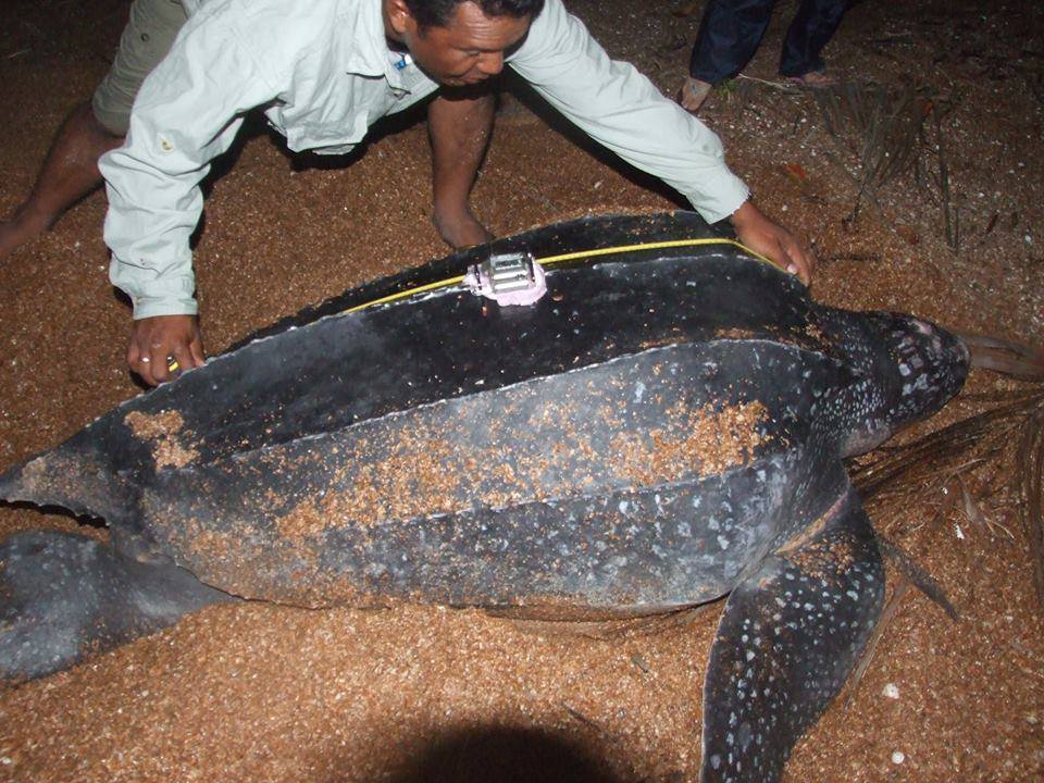 Sea turtle monitoring and conservation is accomplished through field camps covering main nesting sites, manned by local and former sea turtle hunters, as a means of gaining an alternative source of income to sea turtle harvesting. Nightly patrols deter persons from killing sea turtles for meat, and egg poaching.