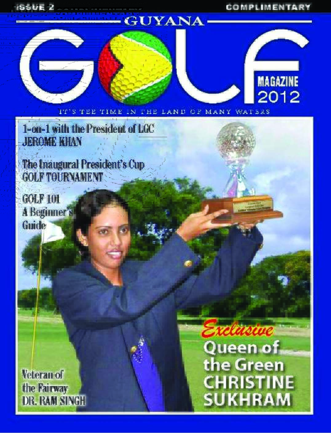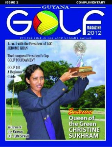The 2012 edition of the magazine has on its cover five-time Guyana Open female champion Christine Sukhram. A quick browse inside shows an interview with LGC president Attorney Jerome Khan, a golf beginner’s guide, a profile of veteran golfer Dr Ram Singh and much more.