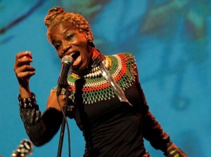 The artiste travels and spreads her music, message, drum and spoken-word poetry artistry backed by her 7-piece support band ‘Slo’burn’ (by trumpet, keys, guitar, bass, percussion, kit drums/MD) and VJ. She plays the djembe and percussion as she energetically sings and dances to the music.