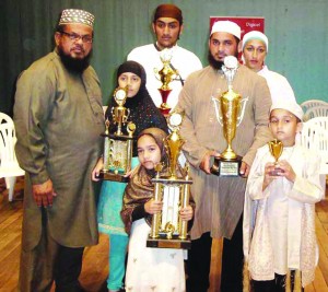 Haroon Subhan of Suriname, back row left, the winner of the male segment of the Qaseeda Competition 2011, poses with his father (extreme left) and relatives who also won trophies in the competition