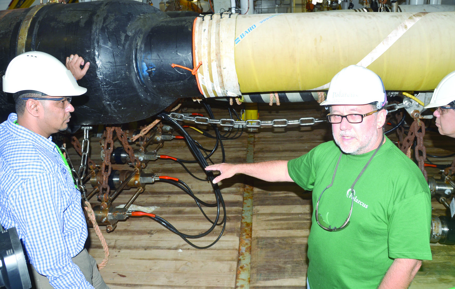 During a tour of the vessel on Saturday, Repsol Atlantic Basins Exploration Manager Allan Kean said the company will take advantage of the old data shot in 2008 in the area, merge it with the new data gained and reprocess it altogether to hopefully get the highest imaging resolution possible so that it could identify the location most likely to have oil.