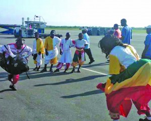 Masqueraders performing for visitors at the Cheddi Jagan Airport in Guyana