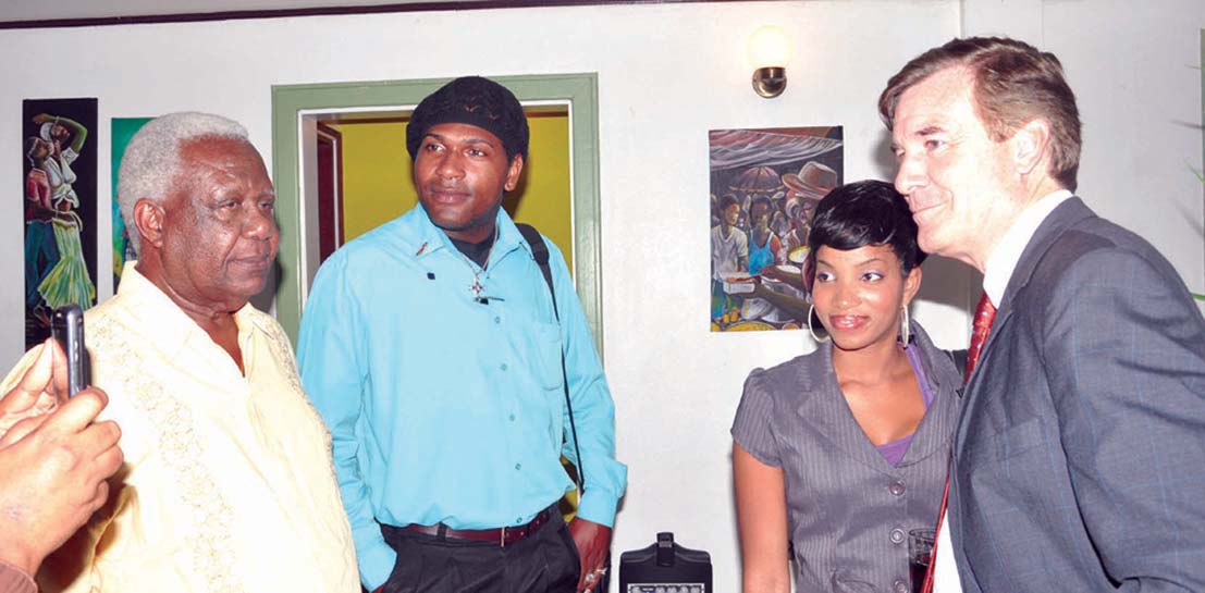 U.S. Ambassador D Brent Hardt mingles with participants of the Counter Trafficking in Persons (TIP) Conference held at Cara Lodge, Georgetown. Also in photo is Food for the Poor’s CEO Leon Davis