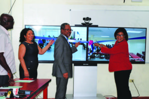 The Minister revealed that it was hoped that birth registration, passport and driver’s licence applications would be available online since that would be more efficient and less time-consuming. Minister Hughes underscored the importance of the teleconferencing suite, noting that it would allow students from the Tain Campus the opportunity to take courses only offered at the Turkeyen Campus, without the hassle of travelling back and forth between Berbice and Georgetown.