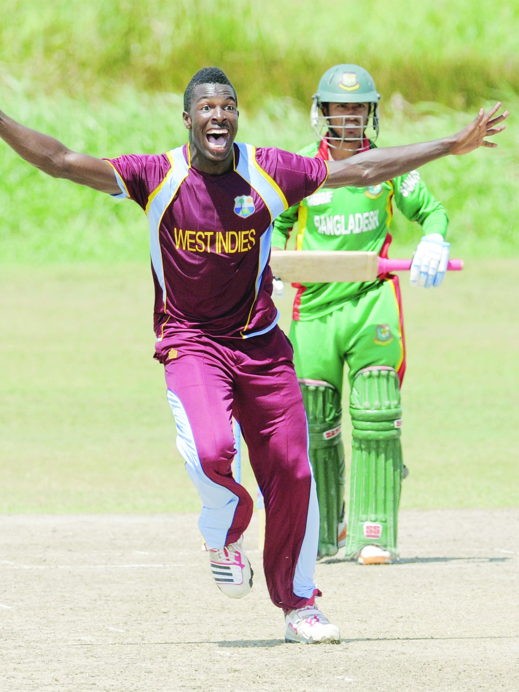 Although Jeremy Solozano put up a valiant fight with an unbeaten 35, which prolonged the West Indies innings, he could not find enough support at the other end to carry the team through to a possible victory.